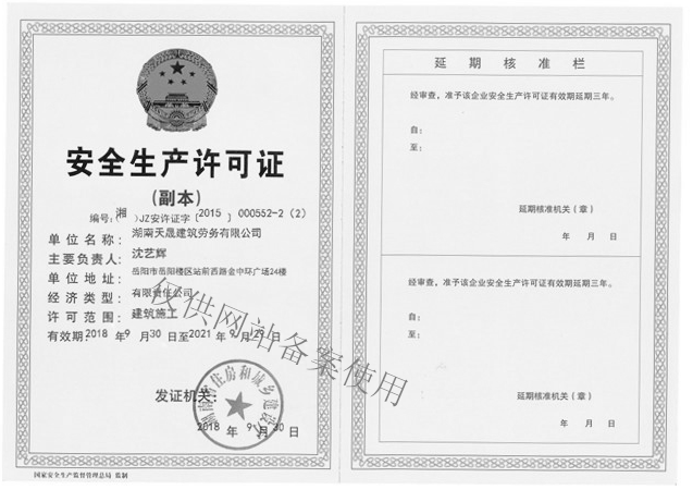 公司2018年9月安全生產(chǎn)許可證延期